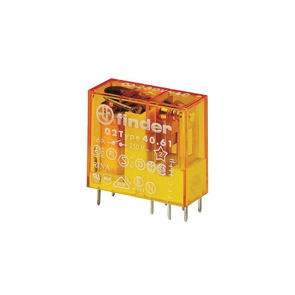 رله 4061.8230.0000 فیندر از نوع رله PCB مینیاتوری (کتابی) ساخت کشور ایتالیا با ولتاژ بوبین 220 ولت AC است. این رله دارای 8 پایه و یک کنتاکت (یک باز و یک بسته بصورت مجزا) بوده که می‌ توان از طریق سوکت 9505 روی ریل مینیاتوری و داخل تابلو استفاده کرد. رنگ نارنجی بدنه این رله فیندر نشان‌ دهنده ولتاژ تحریک از نوع AC می باشد. از خروجی کنتاکت این رله می‌توان 16 آمپر برای کنترل بار اهمی جریان‌ کشی داشت. برای بارهای سلفی الکترومغناطیسی و روشنایی کمتر از ۴ آمپر و برای بار موتوری حداکثر جریان‌ کشی حدود 1.2 آمپر باید لحاظ گردد.