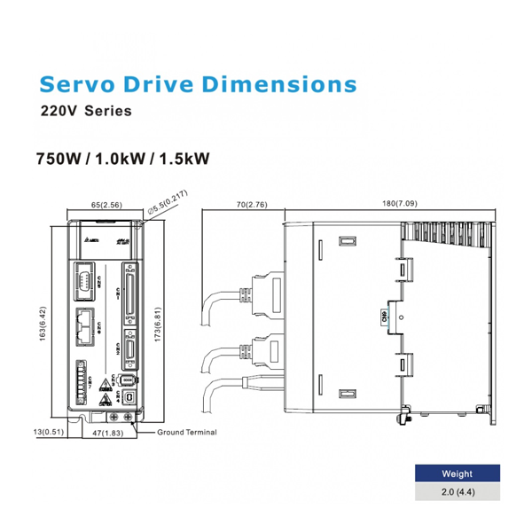این سرو موتور پیشرفته دارای ظرفیت 1000W تا حداکثر دور موتور 1000RPM میباشد ، برق ورودی این مدل نیز تک فازاست و از گشتاور (N-m 8.59 ) استفاده میکند و امکان نصب کانکتور I/O سری ASD-CNSC0050 را دارد.. یکی از مهمترین ویژگی های فنی استفاده شده در این مدل سرو موتور دلتا استفاده از قطر شفت 19 میلی متر و سایز فلنج 130 است .