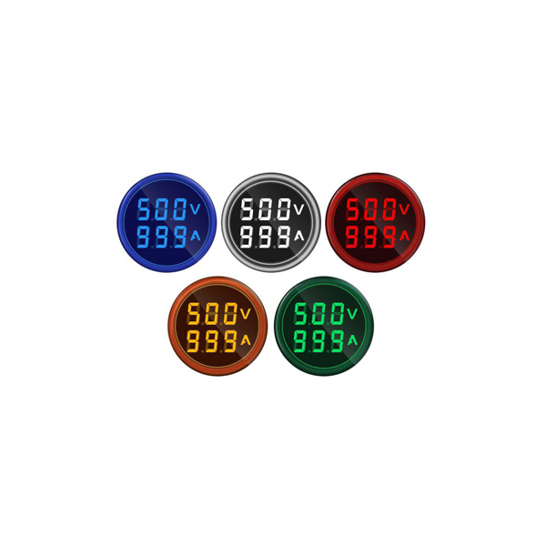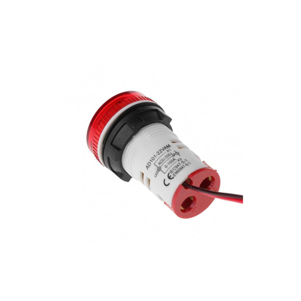 ولت متر و آمپرمتر چراغ سیگنالی AC500V-100A قرمز گرد مدل AD101-22VAM