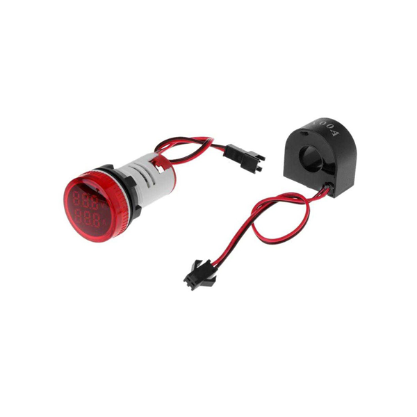 - ولتمتر و آمپرمتر چراغ سیگنالی AC500V-100A قرمز گرد به همراه ترانس جریان CT